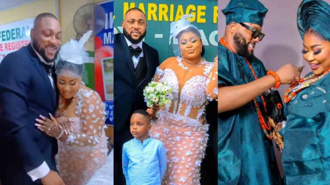 Nollywood actress and new mom, Joke Jigan, is celebrating her second wedding anniversary with her husband.