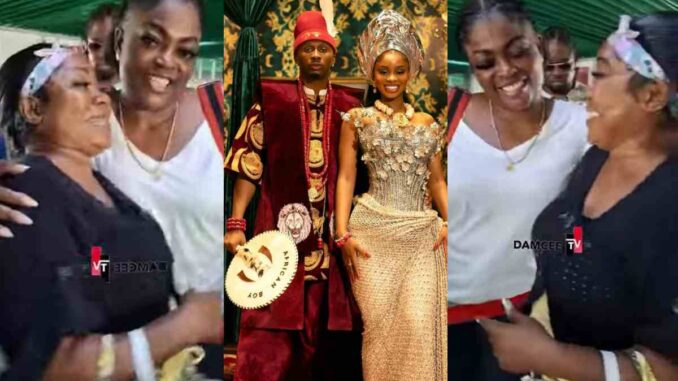 In the clip, the duo share warm pleasantries and pose for the camera, with Jayeola humorously referring to Funke Akindele as the bridegroom.