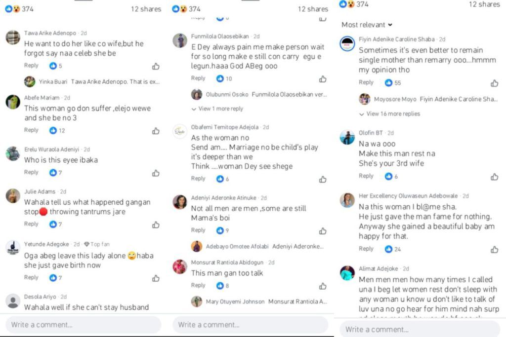 One Fiyin Adenike Caroline Shaba in a Facebook comment wrote, “Sometimes it’s even better to remain a single mother than remarry