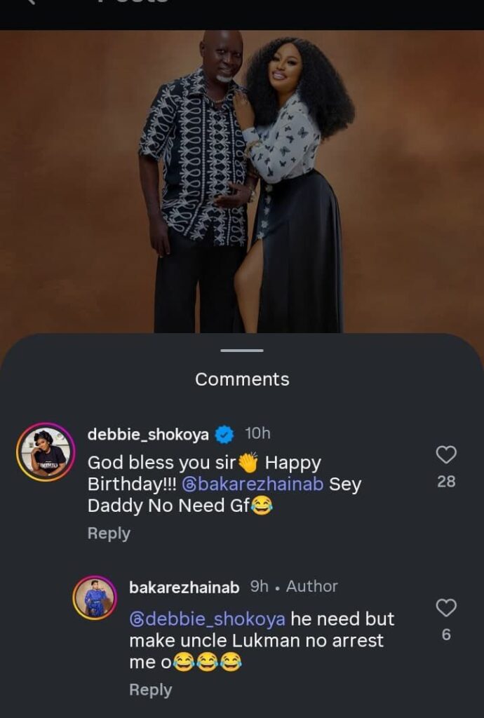 “God bless you, sir. Happy birthday!! @bakarezainab sey Daddy no need gf?”.