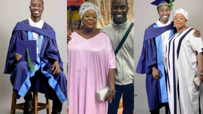 Veteran actress Asunmo Mistura is full of gratitude to God as her grandson, Oladejo Samad Abiodun, successfully graduates from Olabisi Onabanjo University.