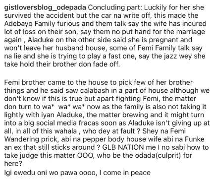The blog also claimed that Omotayo was recently involved in a serious car accident. Following the incident, her in-laws have allegedly chosen to distance themselves from the couple’s marital issues.