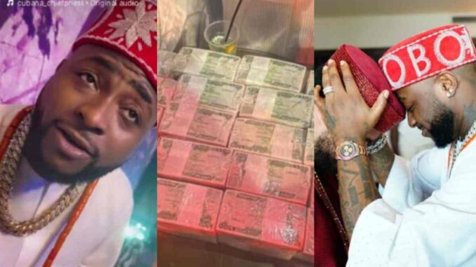 In a clip from the wedding, Cubana Chief Priest had shown off the bundles of naira Davido brought to spray for his wedding.