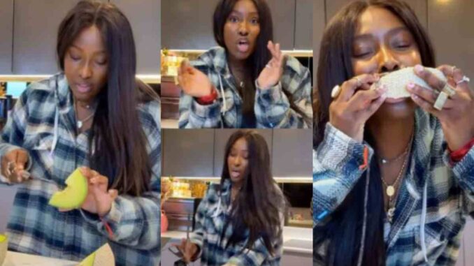 After slicing the melon, Tolani Otedola was left in awe, describing it as incredibly juicy, delicious, and absolutely amazing. She was so impressed by the taste that she couldn’t help but drool over it, clearly savoring every bite.