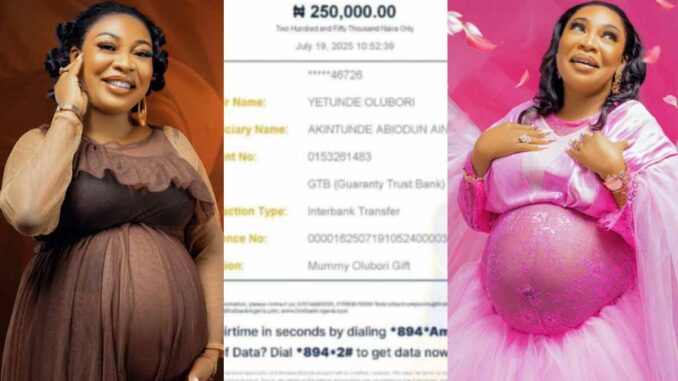 Taking to Instagram, Bimpe posted a screenshot of the credit alert she received, revealing that the prophetess called it a “push gift.” She praised Mary Olubori for standing by her throughout her pregnancy constantly sending her prayers and financial support.