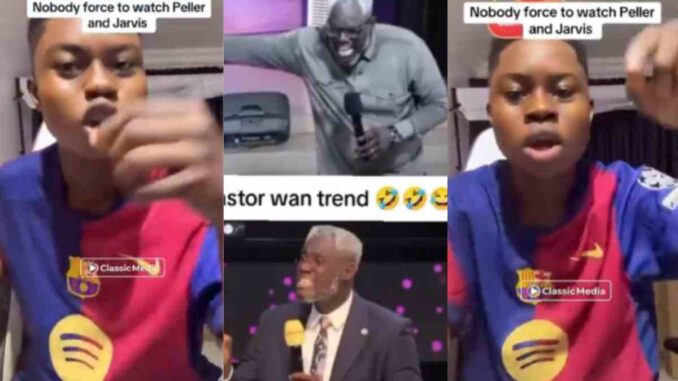 In his words; What is this generation turning to? A pastor go to church and be preaching about Jarvis and Peller. He is saying na Peller and Jarvis make the whole children fail JAMB. Let me tell you something, nobody is forced to watch Peller and Jarvis. See that pastor eh, we will sue you. Yes Mr prophet, we will sue you! Because you use our own name collect offering in your church….”