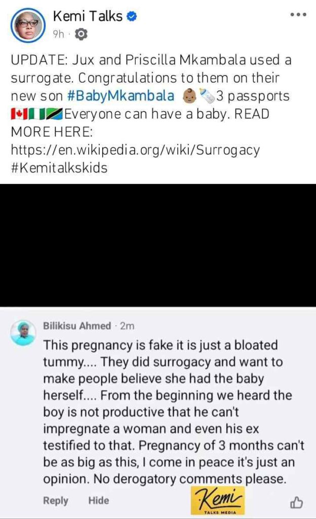 “UPDATE: Jux and Priscilla Mkambala used a surrogate. Congratulations to them on their new son, BabyMkambala