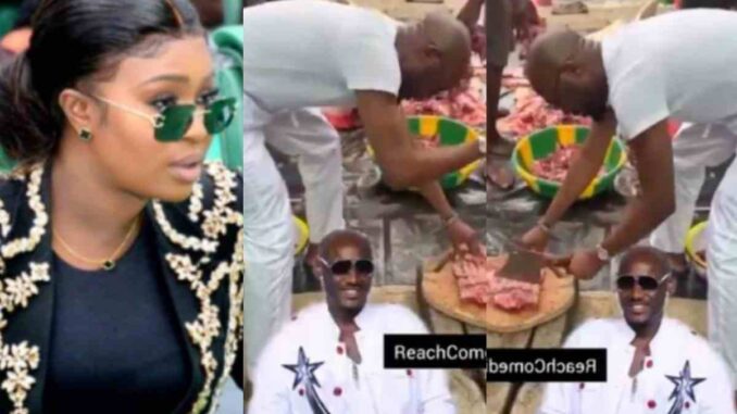 The video, shared by a Facebook user identified as ComedianReach, captured 2Baba cutting meat at what seemed to be an abattoir.