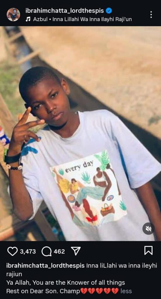 It is a heartbreaking moment for Nollywood star, Ibrahim Chatta, as he mourns the loss of his son.
