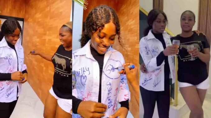 The actress shared a video of her daughter returning home after her sign-out, leaving space on her shirt for her mother to sign.